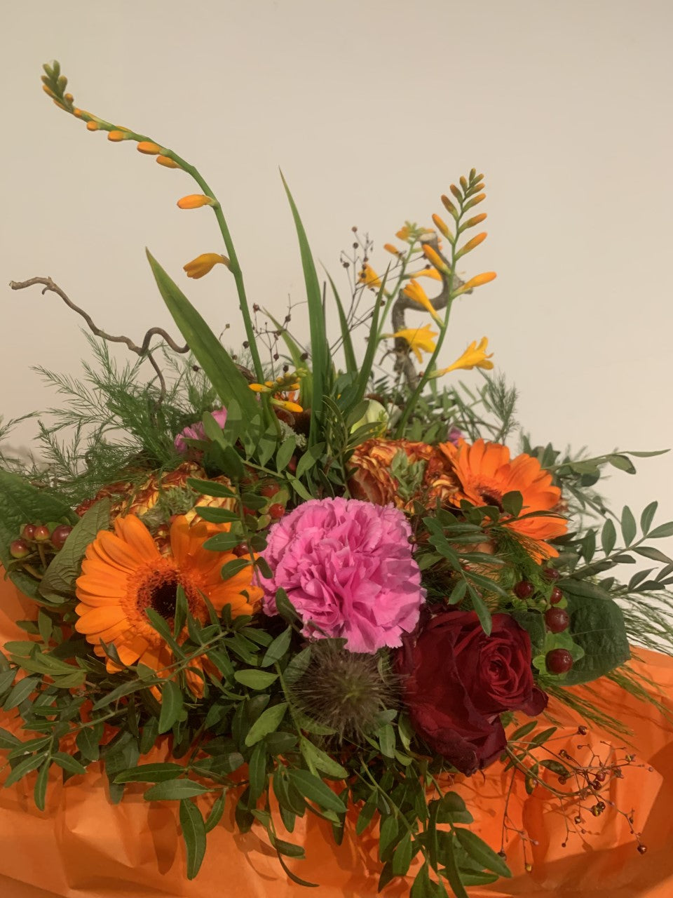 Vores billeder er blot til inspiration for den pågældende vare. Mailflower.dk´s varemærke er vores skønne og meget kreative buketter. Vi går meget op i, at give buketten netop det lille ekstra touch, der gør, at den bliver noget helt særligt. Buketterne varierer efter årstid og det betyder at vi samme dag, har mulighed for at finde sæsonens bedste blomster hos vores leverandør og på den måde sørge for, at du får mest muligt for dine penge. Vi garanterer selvfølgelig for, at buketten bliver smuk og harmonisk i farver og blomster.
